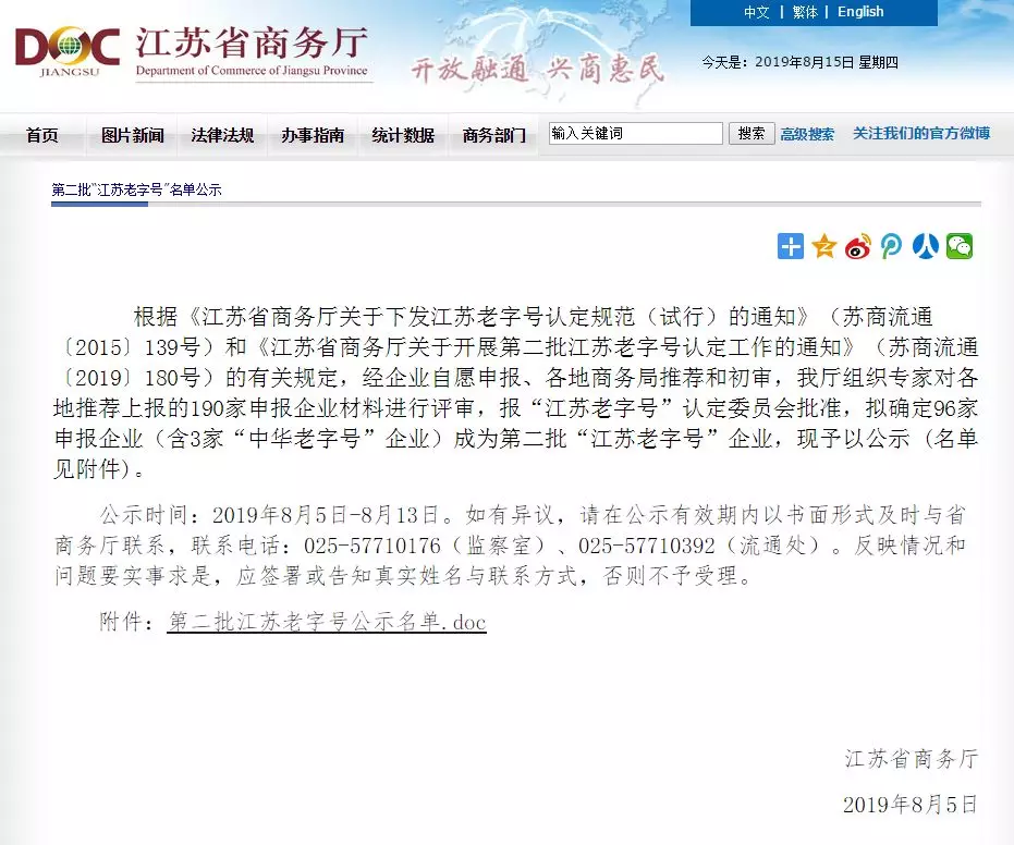 近日,第二批“江蘇老字號(hào)”名單公示