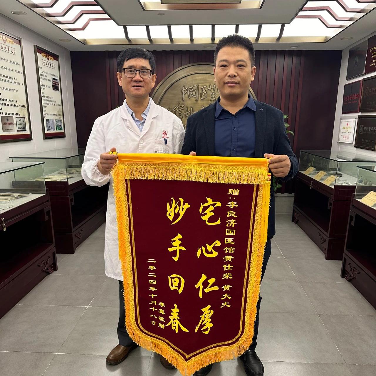 多年腰間盤突出疼痛難忍,黃仕榮主任治療一次就不疼了,患者送錦旗表感謝!