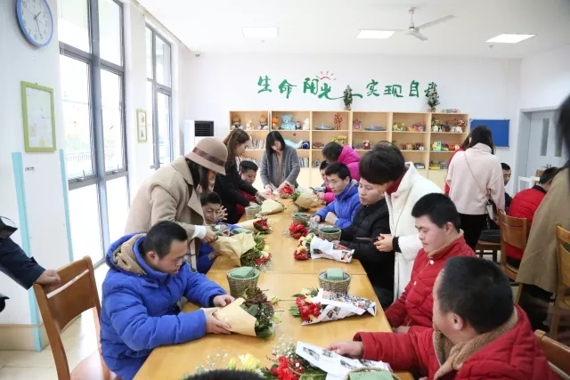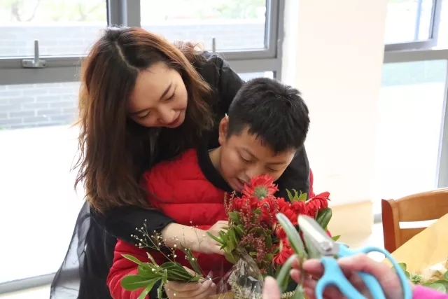 進到福利院里,李良濟芍花會的會員們拿出了準備好的五彩鮮艷的花朵,教小朋友們插花。面對色彩鮮艷的花,小朋友的臉上都掛滿了欣喜。在她們的鼓勵下,完成了插花,并展現(xiàn)出了他們不俗的審美,他們親手制作的花點綴了冬季的福利院。