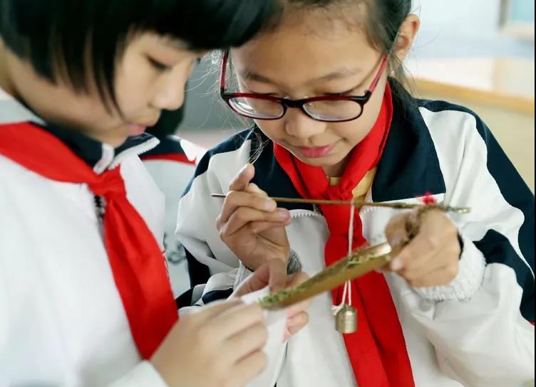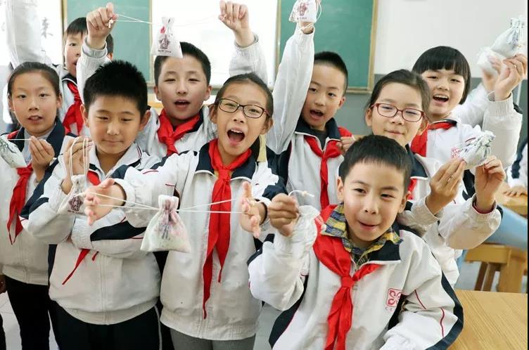 姑蘇區(qū)滄浪實驗小學校的三年級學生,在我們工作人員的指導下學做中藥驅蚊包。